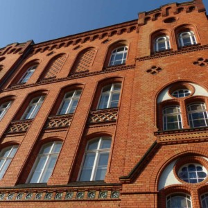 Sie befindet sich in einem wunderschönen Backsteingebäude, das zwar schon über 100 Jahre alt und denkmalgeschützt, aber trotzdem in einem gepflegten Bauzustand ist.